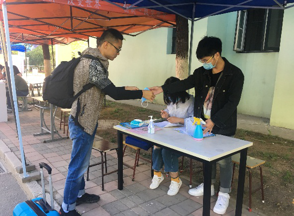 各地的防疫措施严格,而学校的措施也不例外。返校生之间和返校生与志愿者之间间隔一米,返校生的随身物品(如:行李箱、书包、电脑包等物品)到接站点,先用消毒液全面消毒。然后让返校生用消毒凝胶仔细清洗双手,再换上学院提供的一次性口罩。做到毒来则消,人来则安,严防外来病毒进入我们美好的校园。